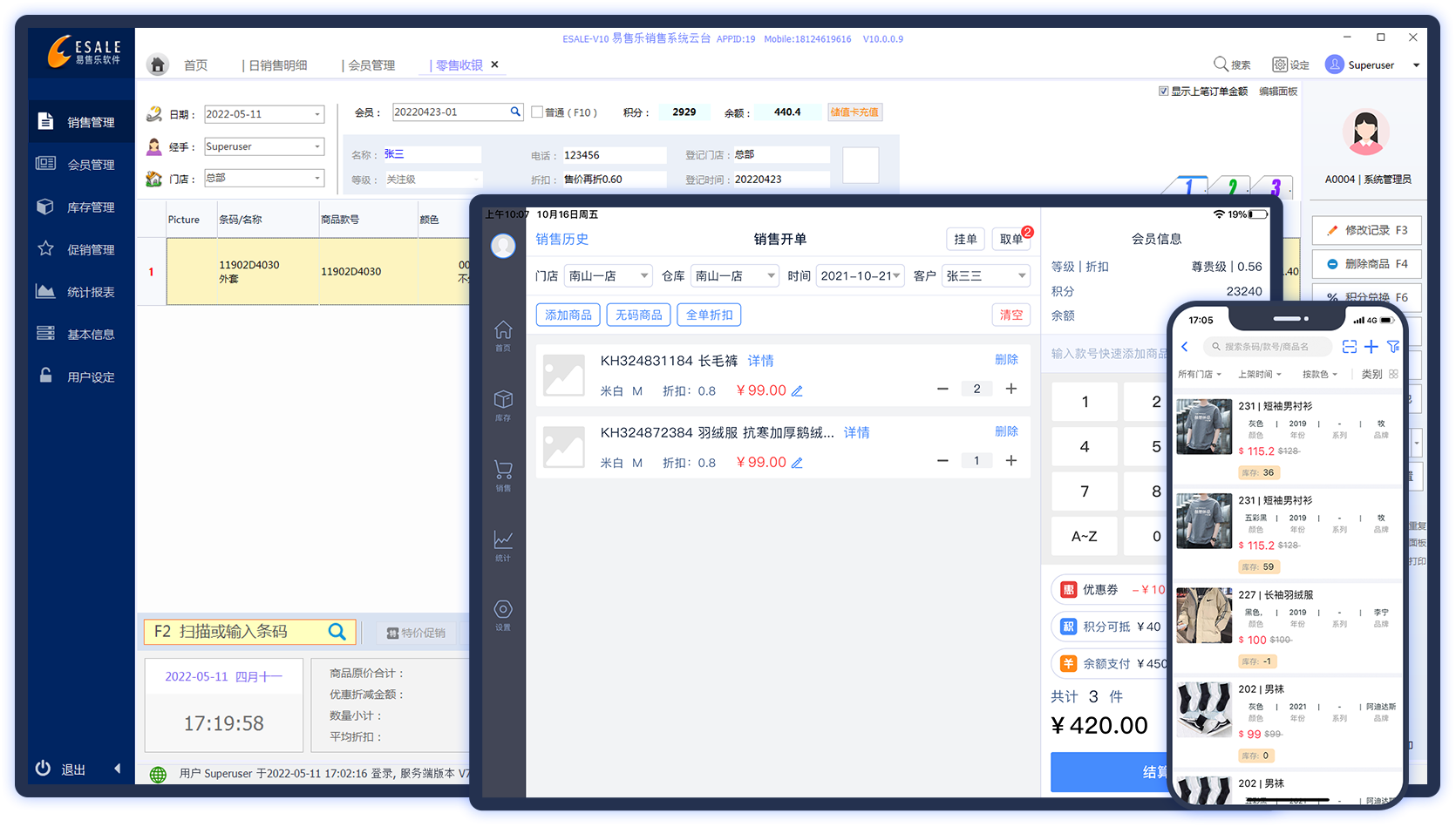 我們的系統支持多種終端,手機、平板、電腦、智慧收銀機都能流暢運行!